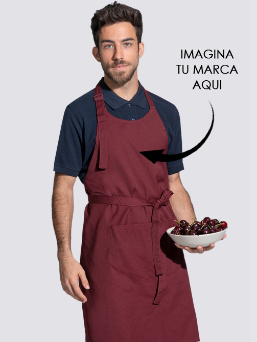Delantal personalizado premium, UNISEX de cuerpo entero. Cinta de cuello ajustable con hebilla deslizante de plástico. Dos cintas en la cintura. Gran bolsillo frontal doble. 65% Poliéster / 35% Algodón. Gramaje: 180 g/m2. DNV 100% algodón. Gramaje de 220 gsm/m².
